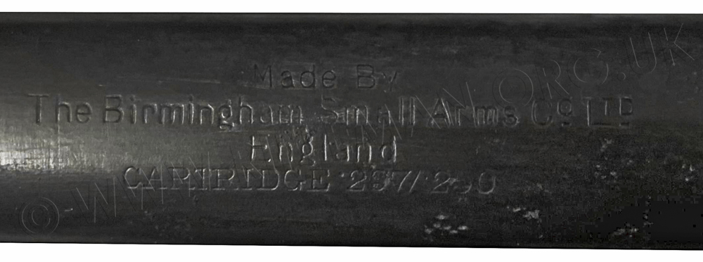 It is in the rather unusual calibre of .297/.250", a sporting cartridge rather like a necked .300" Rook round. This is not to be confused with the .297/.230" Morris Cartridge, from which the .250 was believed to have been developed by Holland & Holland in 1890 by the simple expedient of increasing the Morris case's neck diameter. It uses a 56 grain bullet, and is sometimes known as 6.35 x 20.5R ; manufactured by Kynoch.