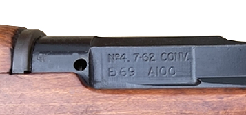 The first few rifles converted from .303-inch calibre No.4 rifles in 1968 were serial numbered 1 to 19. These initially maintained their original .303" calibre magazines, which were purely utilised as single-loading platforms. There is a probability that those after s/no. 10 had the magazine-well machined for the fitment of the Sterling-type magazines for the 7.62mm X 51 NATO round for these converted rifles. The newly engraved nomenclature on the left hand side of the action body was "No.4 7.62mm CON."