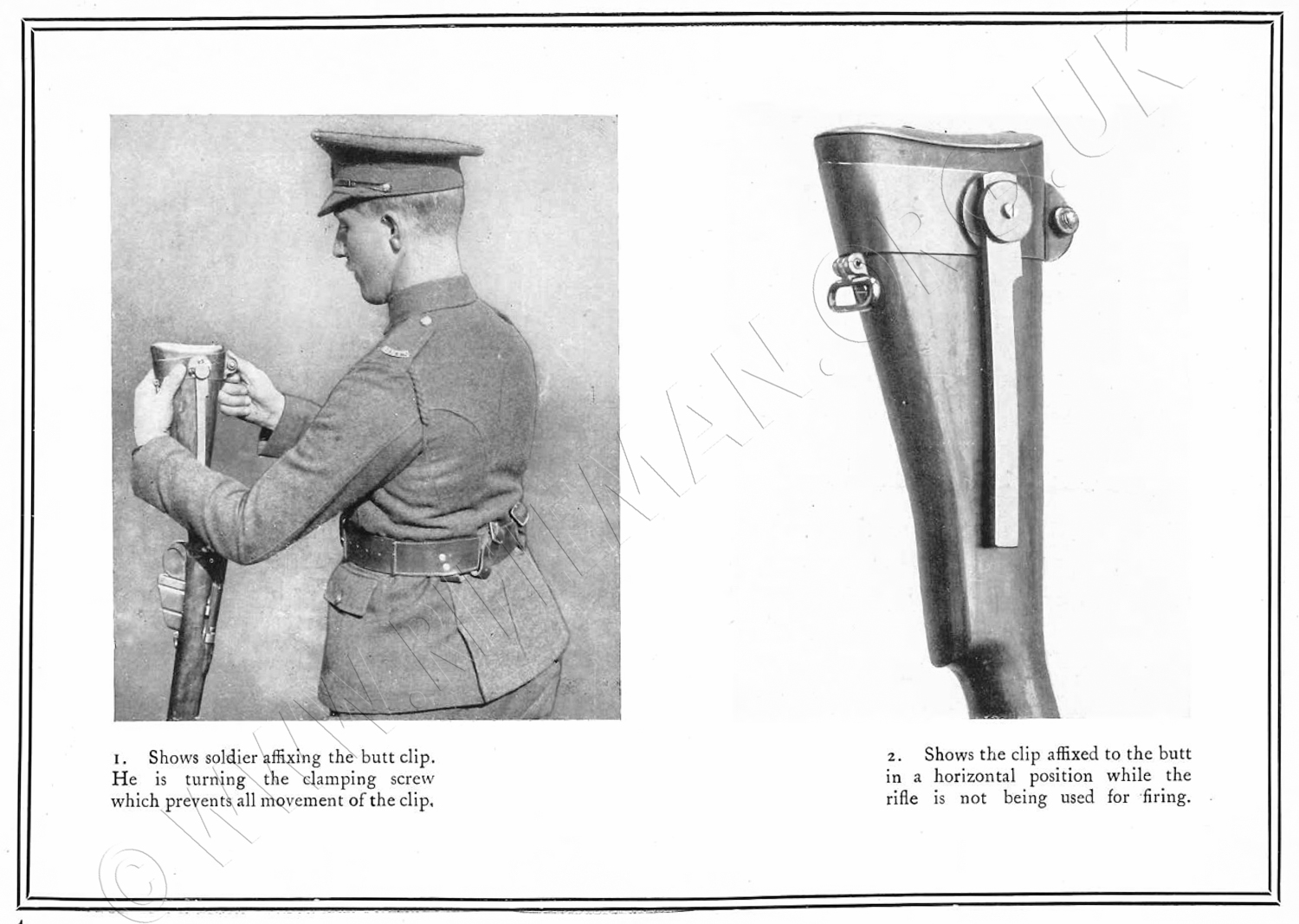 formed with a clip a, b for securing it to the gun. Figs. 8 and 9 show a method
