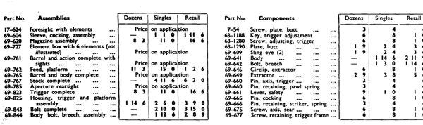 and the associated key tables showing the parts and their contemporary pricing in Pounds Sterling ( with shillings and pence as prior to 1971 decimalisation).
