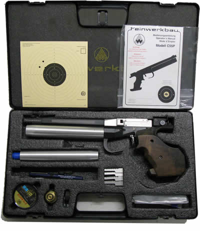 Below is a Feinwerkbau PCP target pistol with multi-shot capability for use in 5-shot rapid-fire competition.