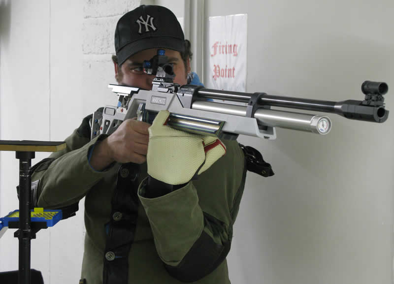 Below are close-up images of air-pistol and air-rifle shooters in action.
