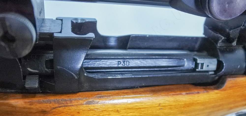 The milled groove in the bolt body's long lug carries the mar "P30".