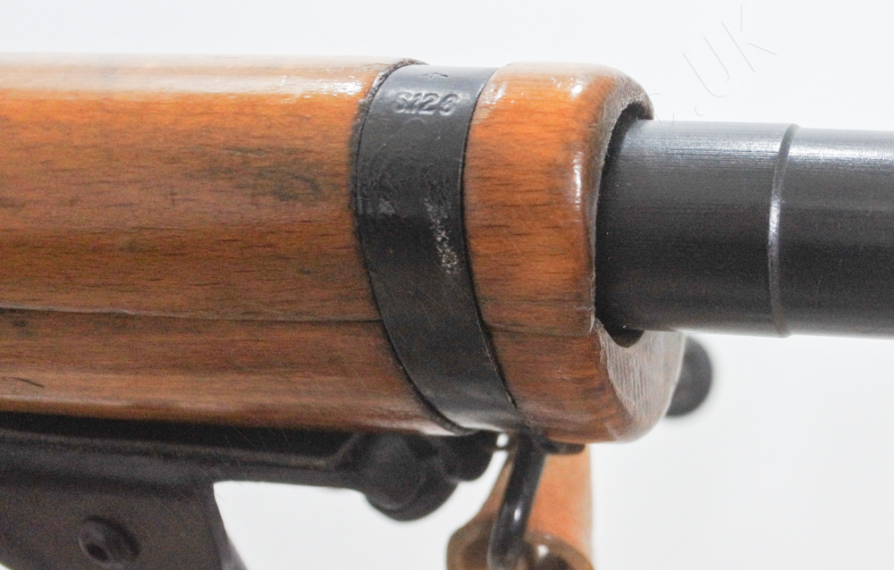 Note that, unlike the L42A1 sniper rifle or the Envoy civilian target rifle, the barrel has a small shoulder, just ahead of the fore-end nose, reducing the barrel diameter slightly.