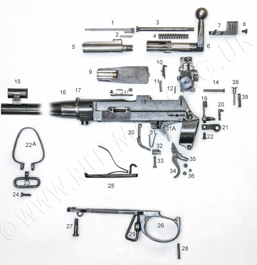 Below is a disassembled view of our No.6 style rifle's ironwork components.
