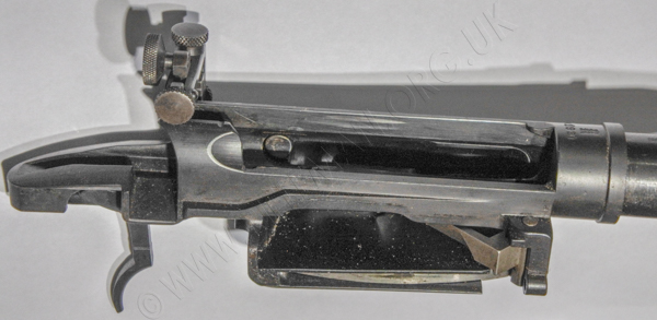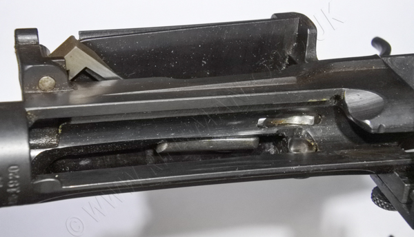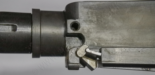In the left side of the body a longitudinal hole is bored from the rear end into the exit from the magazine for the stem of the cut-off, L. In the bottom of the rear part of the bolt way is a slot (7) for the ejector.
