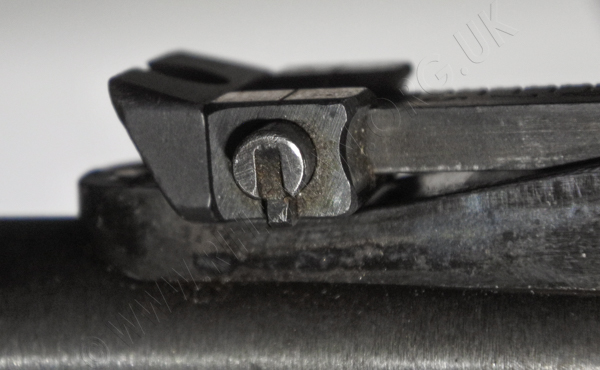 Backsight bed of windgauge sight of U.S.A. Krag Jörgensen rifle.
