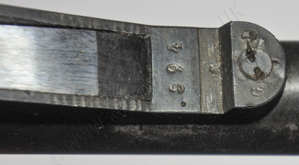 The crossbar, grips and pommel are similar to those of the bayonet used with the Lee-Enfield rifle. All the steel work is left bright.