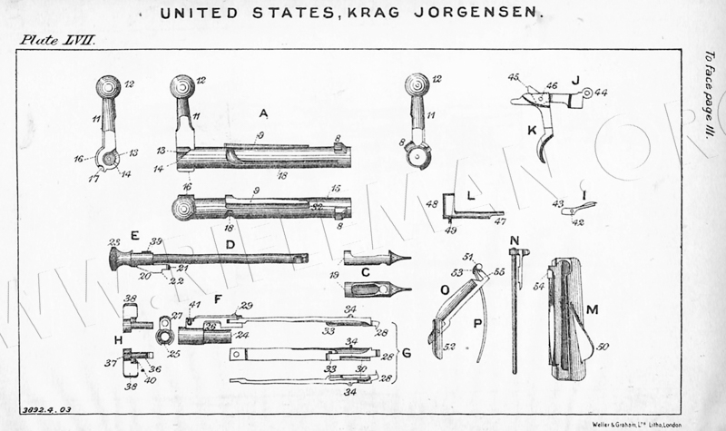 Below: an 1892 drawing of the action from the appendix of a contemporary Ordnance Manual