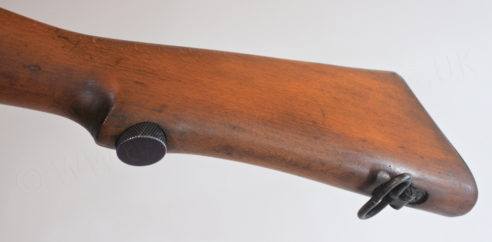 Each of the trials and standard rifles has a Parker-Hale screw-cap fore-sight element container let into the underside of the butt. The standard Envoy rifle illustrated on site also has one, but that is an original A.G.Parker example.