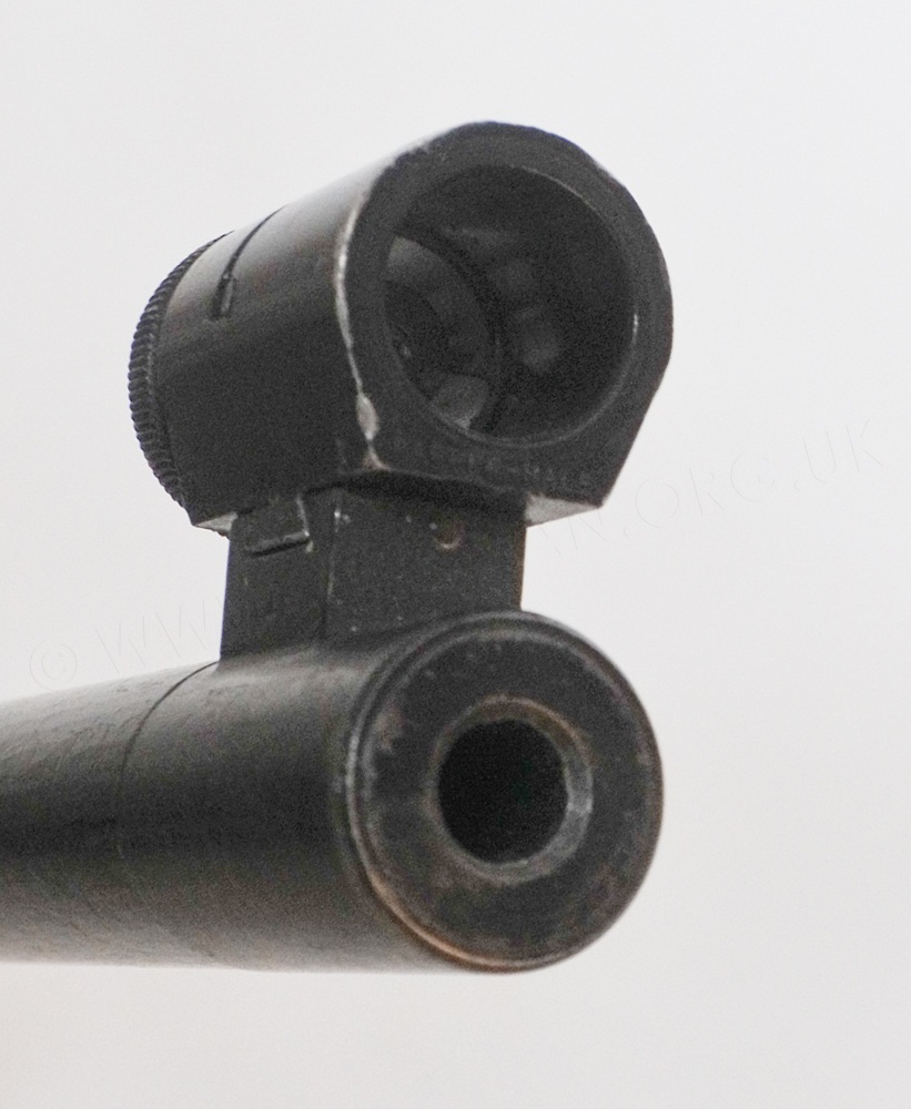 The sight has an unusual attachment, effectively a short shade tube, to the rear of the Parker-Hale-type six-hole eye-piece. While the similar arrangement of eye-piece and shade on our Enfield Envoy is marked for Parker-Hale, this pair are unmarked.