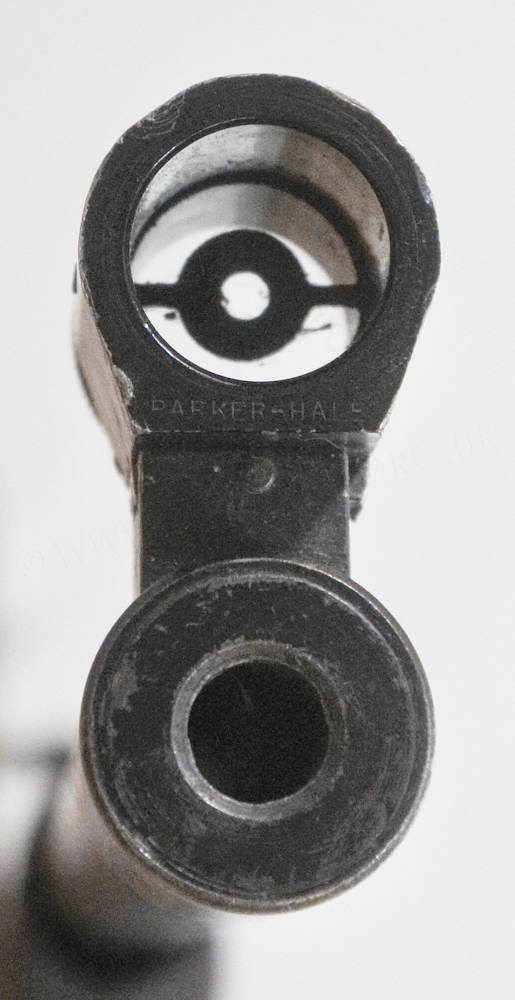 This rifle is fitted with the familiar Parker-Hale PH-5C target rear-sight