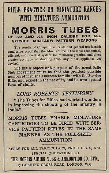 Morris tubes became available for the Lee-Metford and Lee-Enfield rifles, and Webley revolvers.