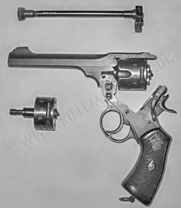 The Parker-Hale adapters provided a far more economical proposition, than did specialist permanently converted or factory option miniature-calibre revolvers, for those already in possession of service models, with the six-shot models for the .455" Webley Mk.VI and Enfield .38/200, each costing only £2:2:0 - two guineas. The single-shot version for the Mk.VI was just £1:16:0.