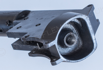 The image below shows the mounting block with twin trunnion pivots, and the latching lever at the rear.