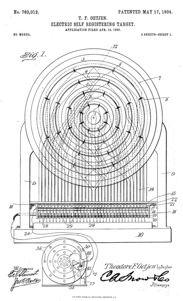 There was evidently considerable competition for the marketing of such equipment at the time. Indeed, there had been a British application for an electrically registering target of concentric rings by one William G. Williams as early as August 1901; patent no. GB190205592A.